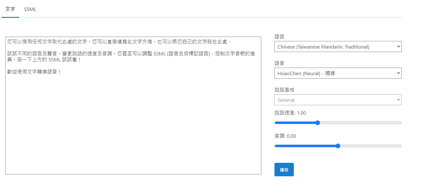 pip install azure-cognitiveservices-speechText-to-Speech API 的呼叫需要先建立一個 SpeechSynthesizer 對象,並將待轉換的文字傳遞給它,最後將轉換後的語音保存到文件或者播放出來。